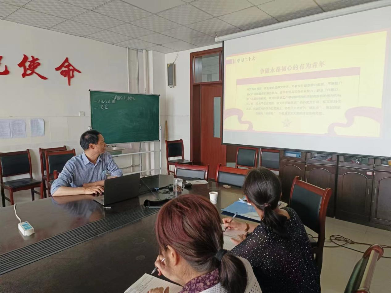 院长武利顺以“学习贯彻党的二十大精神,在新征程中展现青年担当”为主题,对新征程、新思想、新篇章三方面展开相关阐述。他着重强调:青年兴则国家兴,青年强则国家强,要筑牢信仰之基,争做信仰坚定的有志青年;要厚植为民情怀,争做永葆初心的有为青年;要践行使命担当,争做新时代奋斗青年。武利顺带领党员们深刻学习体会党的二十大精神,带动全体党员自觉加强理论学习,要求不断在以学铸魂、以学增智、以学正风、以学促干上取得成效,高质量推动主题教育扎实开展、走深走实。他提出要高擎“坚持真理、坚守理想”的思想火炬,践行“初心使命、担当作为”的政治本色,淬炼“对党忠诚、心系人民”的道德品质,紧紧围绕学校党委中心工作,锐意进取,务实创新,以昂扬向上的精神风貌,为学院高质量发展不懈努力。