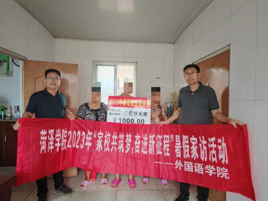 本次家访中,外国语学院深入菏泽巨野、潍坊高密、威海文登走访学生家庭,送去了学院的关爱和温暖。在受访学生家中,外国语学院领导老师与受访学生、家长进行深入交谈,详细询问家庭基本情况以及所面临的困难和问题,了解学生暑期在家生活学习状况、思想动态等情况,听取学生和家长对学院教育、管理和服务等方面的意见和建议。同时,详细介绍政府的相关助学政策以及必赢集团bwin的相关帮扶举措,为学生下一步的学习和就业提供意见指明方向。学院领导老师与受访学生及家长进行面对面沟通,鼓励学生保持积极乐观的态度,树立远大志向、锤炼品德意志、练就过硬本领,抓住假期的宝贵时间,认真复习,并对学生关于考研的问题一一解答,针对性的提出了建议和意见。