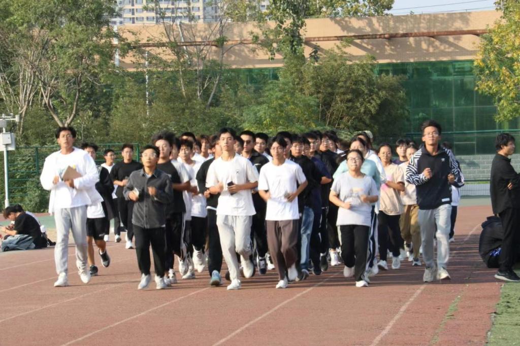 在第一次测试之前,体育部部长整理好队伍,带领全体同学进行热身运动。比赛分为男女两组,交替进行测试。选手们一个个精神抖擞奔跑在红白相交的跑道上,他们身姿矫健,挥洒汗水,展示勇气,尽情释放对体育的热爱。这不仅是一场勇往直前的挑战,更是一场激情四溢的盛宴。最终,在观众的呐喊与喝彩中落下帷幕。