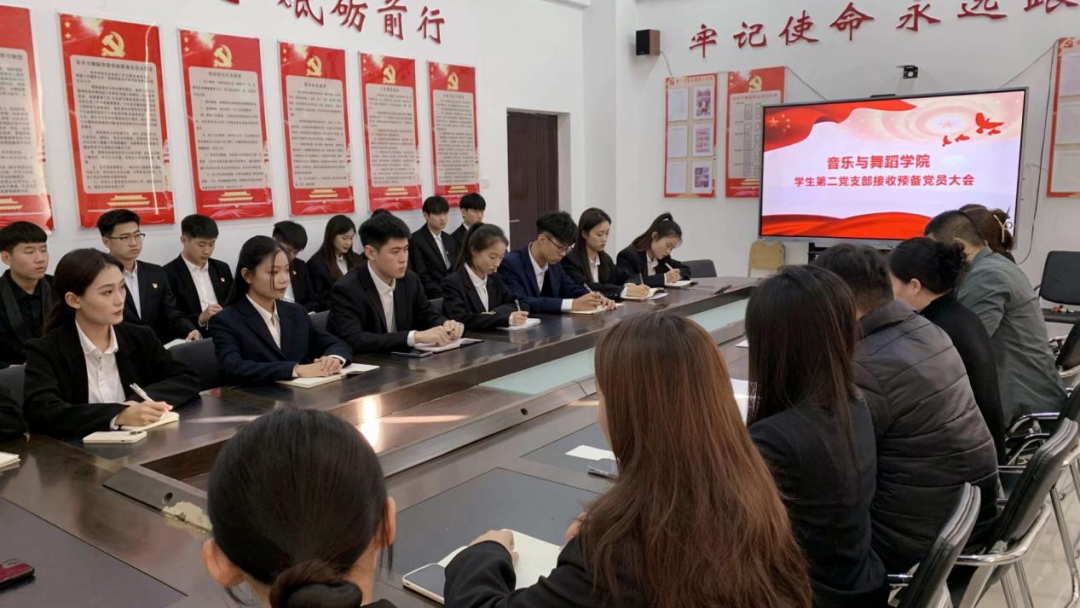 为了将符合党员条件的优秀青年学生凝聚到党的队伍和事业中来,进一步加强和推进党员队伍建设,为基层党支部注入新鲜血液,音乐与舞蹈学院学生第二党支部于11月7日下午于艺术实训中心406会议室召开预备党员接收大会,本次党员大会由学生第二党支部书记张华丹老师主持,学生第二党支部全体党员参会。