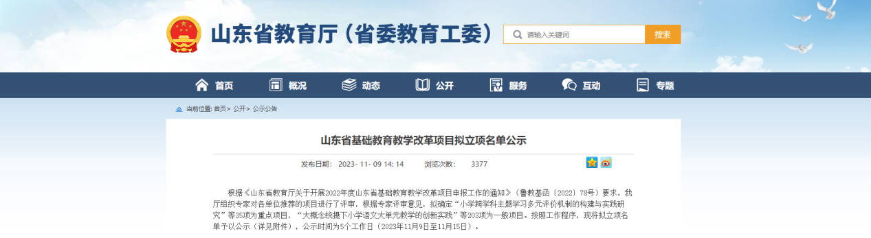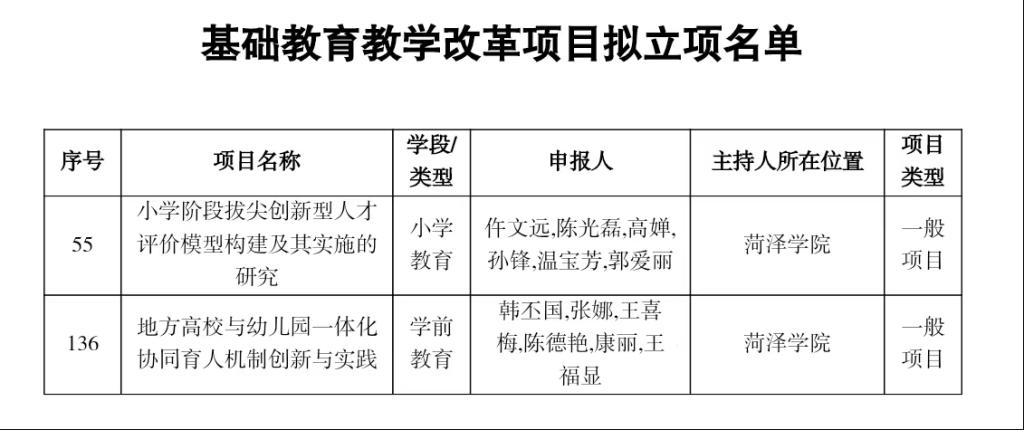 近日,山东省教育厅公布了“山东省基础教育教学改革项目”拟立项名单,教师教育学院2个项目入选。分别是教师教育学院副院长韩丕国的《地方高校与幼儿园一体化协同育人机制创新与实践》和心理科学系主任仵文远的《小学阶段拔尖创新型人才评价模型构建及其实施的研究》。