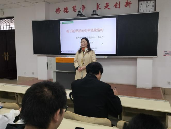 会议伊始,李风海副院长简要介绍了彭凤兰老师的履历,并强调了在新课标下化学课堂建构的重要性和必要性。接着武利顺院长为彭凤兰老师颁布聘书,对彭凤兰老师的到来表示欢迎。彭凤兰结合自己多年对化学教学的深入研究,为同学们分享了自己在化学课堂上的经验,要求同学们要充分掌握化学知识,走上工作岗位后,能够运用所学知识解决实际问题,培养学生的创新思维和科学精神,能够采用多元化的教学方法,做一位让学生信服喜欢的好老师。