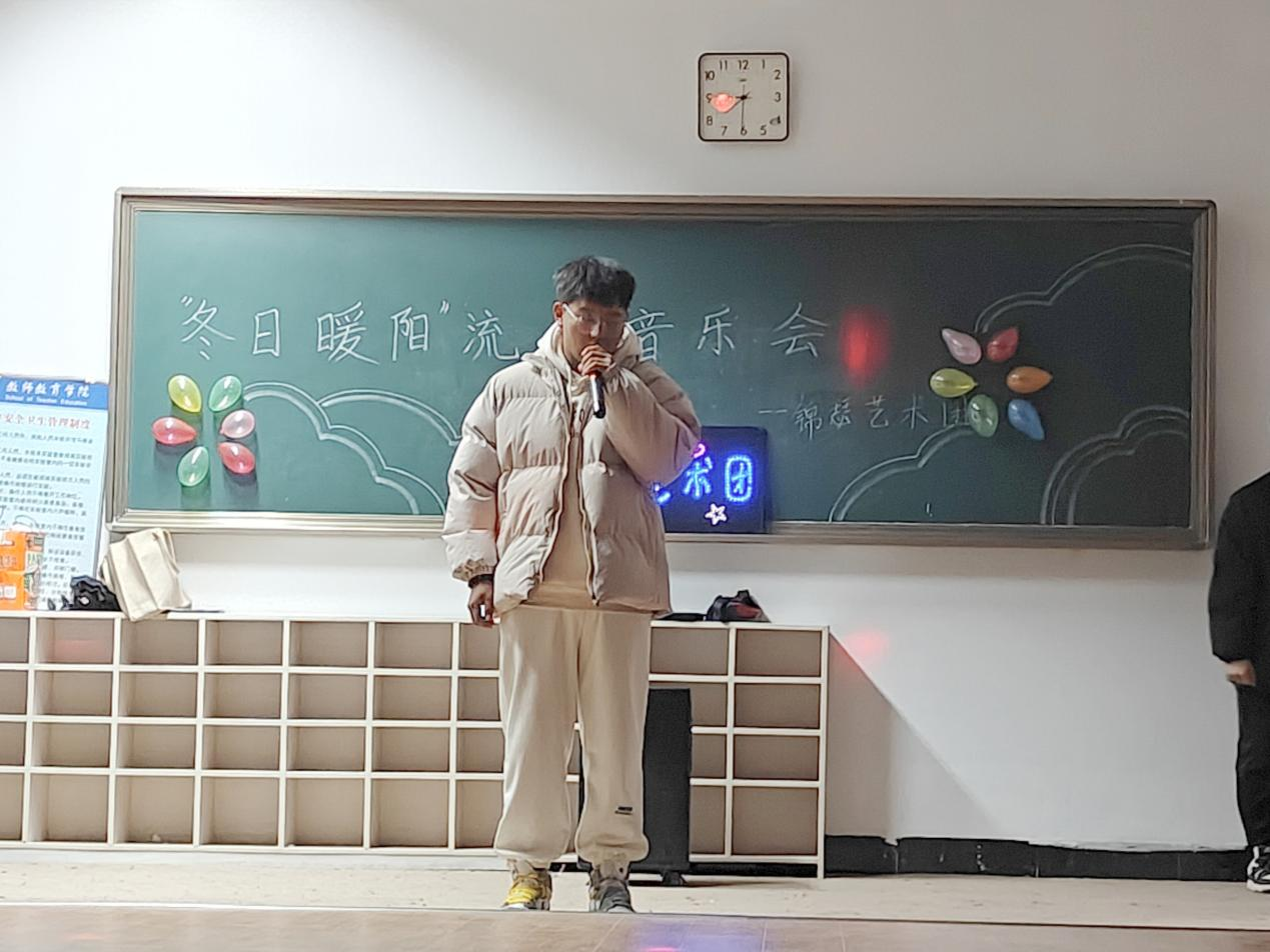 11月12日,教师教育学院锦瑟艺术团以“冬日暖阳”为主题的流行音乐会在4号教学楼410室举行。教师教育学院学生积极参与本次活动。
