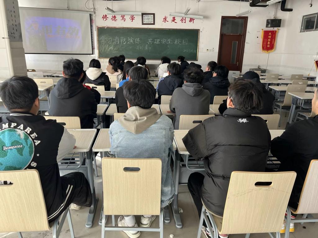同学们先在班级中观看消防安全视频。视频讲述了各高校的实际案例,警示同学们在日常中加强防范意识。同时,视频中专业人员为同学们讲解了各种注意事项,提升学生们的防火防灾能力。