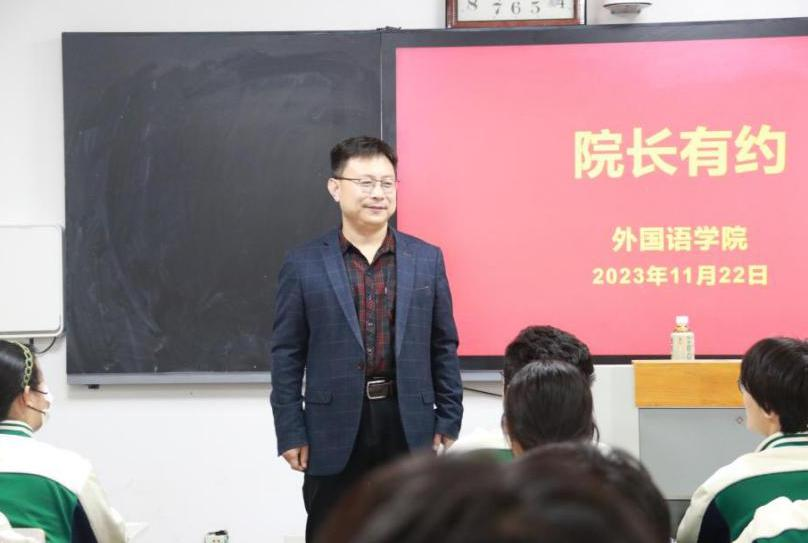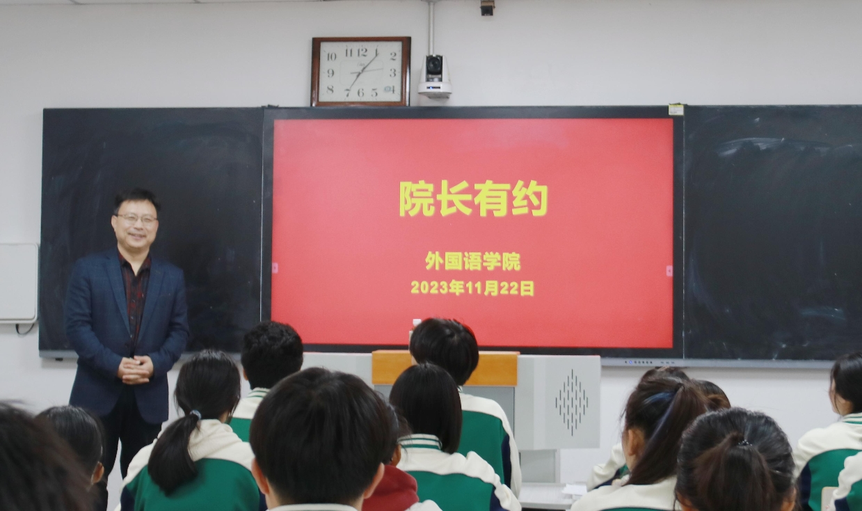 为解决学生在学业、专业和就业等方面的困惑,提升学院的人才培养质量,2023年11月22日,外国语学院“院长有约”于7号教学楼311室举行。外国语学院院长孙洪波教授以“make the noise before the voice”为题做了发言。桑海英博士主持本场“院长有约”,2023级日语专业学生参加活动。