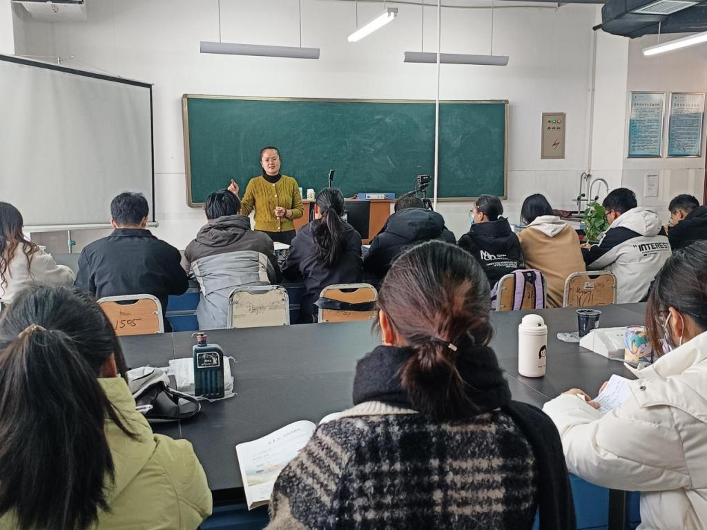 为检验师范生的的观摩学习成果,加深学生对教学理念及所学专业技能的理解,加强化学化工学院学风建设,12月9日,化学化工学院教师成晓琳带领2022级化学(师范)专业学生在E-524教室开展教研讨论。