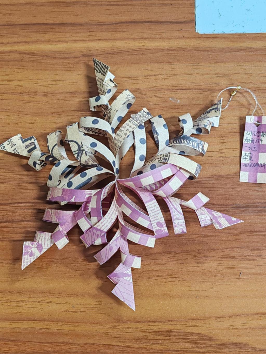 本次活动的参赛作品种类多样,同学们发挥想象力和创造力制作出一个个新奇美丽的作品。其中,2023级学前教育专业3+4一班李萱通过手工制作的方式将一张卡纸变成了一朵绚烂的雪花,表达了对冬天浓浓的喜爱之情;2023级小学教育专业一班孟梓涵的作品独特新颖、细节精致,用折纸折出神话传说“月亮与玉兔”的形状,作品承载着深厚的文化内涵,表达了对美好生活的向往。