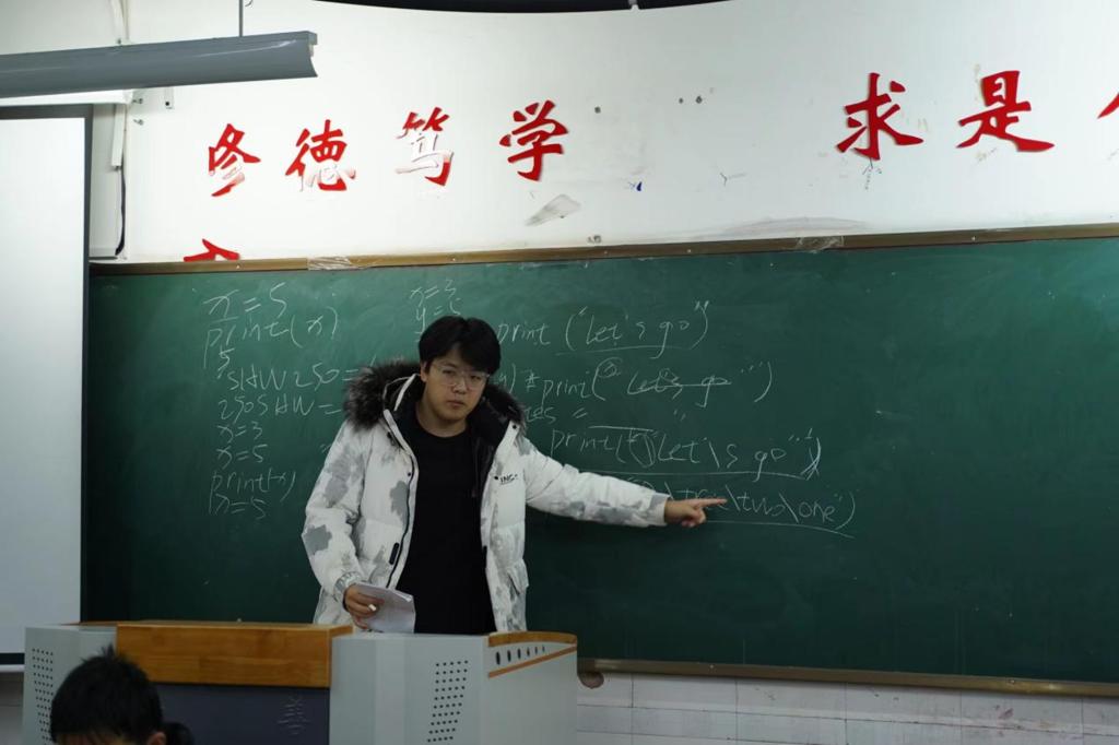 首先,社团负责人介绍Python编程的相关知识,带领社员学习python的基础教程,社团成员们先通过看入门学习Python视频教程,简单了解Python编程。然后,社团副社长讲解用Python编辑器学习字符类型。