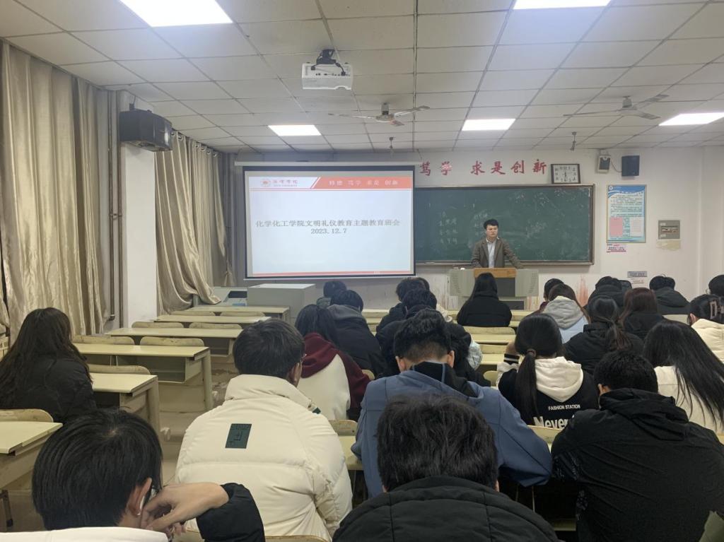 为加强对化学化工学院学生文明礼仪教育,提高学生素质,12月7日,化学化工学院于105教室召开文明礼仪教育主题教育会议,化学化工学院辅导员田涛及部分学生代表参加此次会议。
