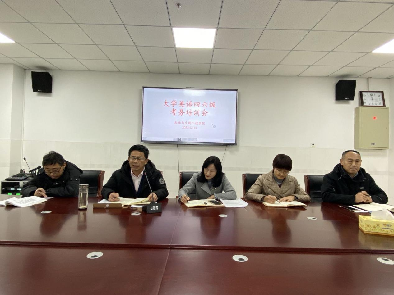 12月14日下午,农业与生物工程学院在W222会议室召开大学英语四六级考务培训会。党委书记刘燕、院长李建奇、党委副书记李战国、副院长毕瑞明、党政办公室主任田福忠及全体辅导员和班主任、全体监考老师参加本次会议,会议由院长李建奇主持。