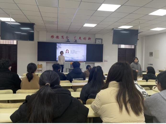 优秀学生答辩环节,七名候选人依次上台答辩。她们将自己一年的学习生活汇总在PPT中,用激情的演讲表达出对学习、对生活的热爱。她们介绍了自己的学习经验,同时一一列举出在课余时间的实践活动成果,真正的做到劳逸结合,全面提升了综合能力。