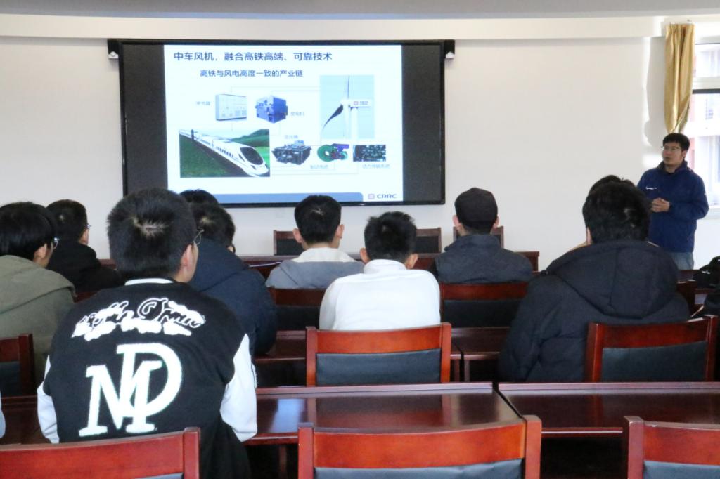 在本次交流会中,中车山东风电有限公司的专家对风电技术与市场发展进行了剖析与讲解。同时从公司雄厚的研发实力,以及先进的制造与质量管控体系两个方面介绍了公司的优势,系统地介绍了公司的研究院和自主研发平台与质量管控全覆盖的产业链。在互动环节,学生们积极提问,与专家进行了深入的交流和探讨。