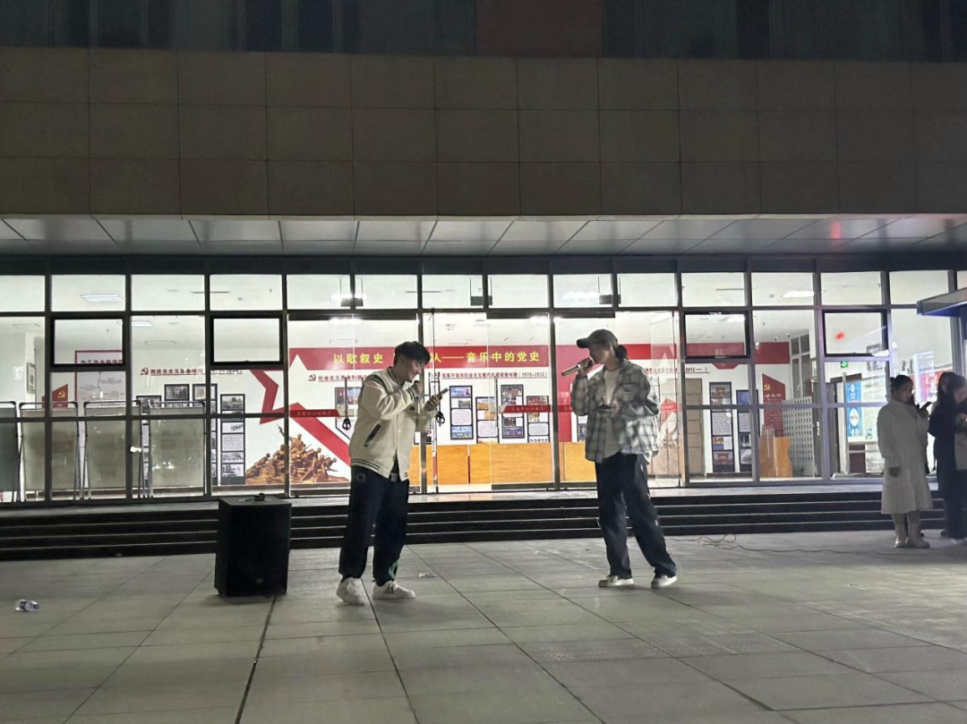 活动在路宇航演唱的歌曲《特别的人》中拉开了序幕,流行歌曲熟悉的旋律吸引来自各院的同学在广场相聚,一同欣赏精彩的表演,现场的同学们沉浸在热烈的气氛中。随后,由音乐学专业的同学们带来的《怪咖》《晴天》《别怕变老》以及23级牡丹学院许崇斌带来的《私奔》等歌曲带给大家不同的体验。紧接着,23级体舞班女生展示的舞蹈《路过人间》以及音乐学班司靖煜所带来的《ditto》赢得了全场热烈的掌声。同学们为表演者们欢呼鼓掌,大家沉浸在舞蹈的世界中。最后,“舞林大会”特色节目——《入戏太深》、《牛奶歌》、《最炫民族风》等伴随欢快音乐而来的广场舞环节让现场同学们一起参与其中。