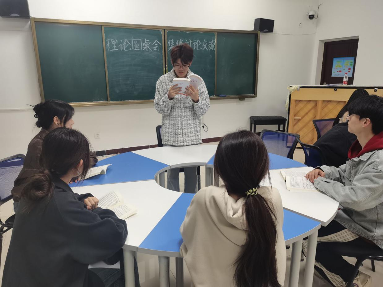 为深入学习贯彻落实学习贯彻习近平新时代中国特色社会主义思想主题教育,以习近平总书记强调的“读原著、学原文、悟原理”为工作指引,音乐与舞蹈学院学生第一党支部联合院学生公寓党员工作站,聚焦夯实青年党员理论基础,增强理论认知力、理论思辨力、理论宣讲力与理论传播力,开展以“理论黄金屋、理论练武场、理论圆桌会、理论集结号”阅读、交流、宣传为具体环节探索有效的“理论星火计划”活动。