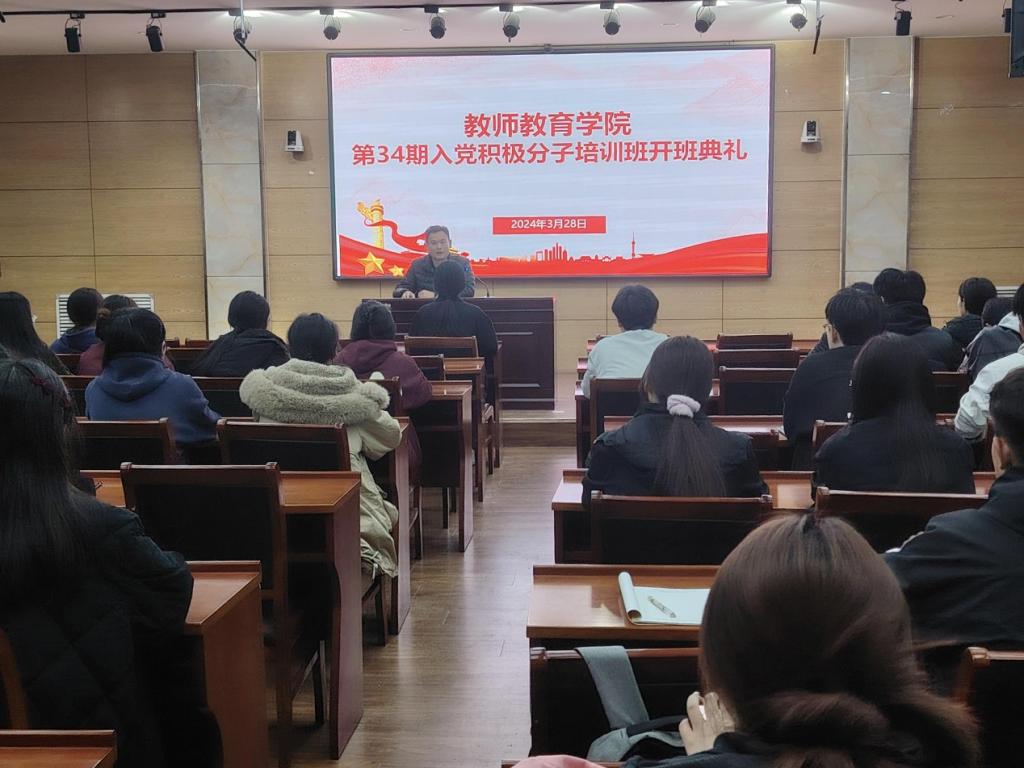 为进一步加强对入党积极分子的培养、教育和考察。3月28日,教师教育学院第34期入党积极分子培训班开班典礼在教师教育图书馆108室举行。教师教育学院学生第一党支部支部书记刘燊、学生第一党支部组织委员、宣传委员夏雨及第34期全体入党积极分子参加本次活动。学生第一党支部书记刘燊主持会议。