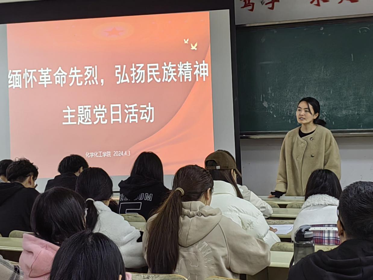 为引导大学生铭记历史,缅怀先烈,4月3日晚,化学化工学院组织全体党员于9号楼114开展“缅怀革命先烈,弘扬民族精神”主题党日活动。