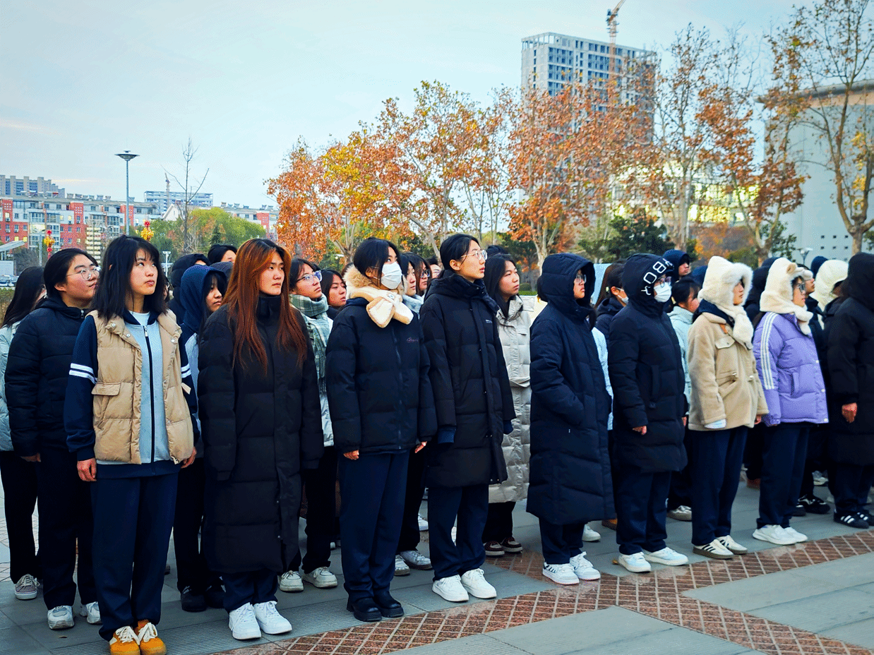 12月9日上午,在必赢集团bwin学生工作处安排和指导下,教师教育学院在综合楼前举行升旗仪式,2024级全体同学参与。