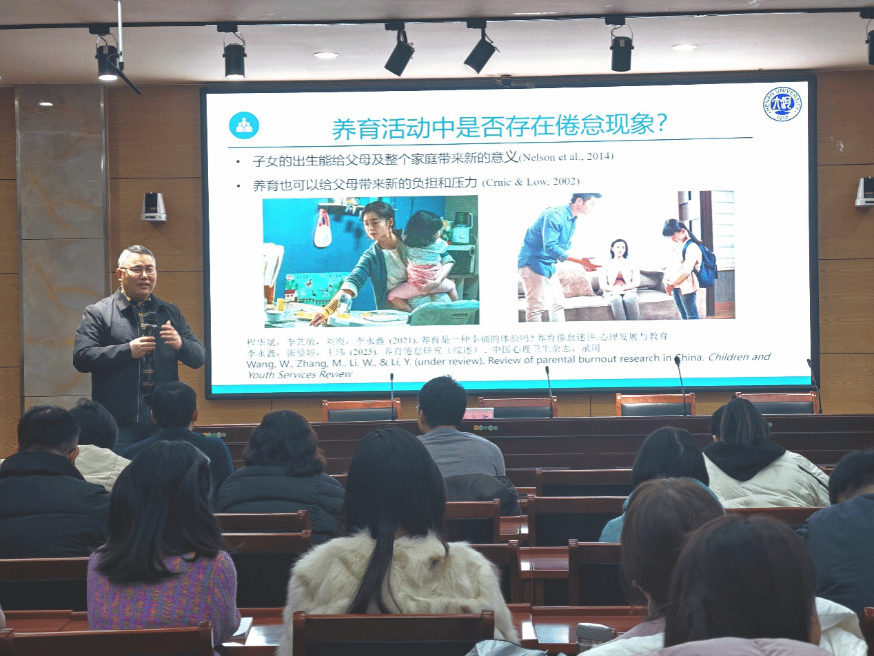 2月21日上午,河南大学心理学院院长、博士生导师李永鑫教授在教师教育博物馆108室作“养育倦怠的初步研究”专题讲座,教师教育学院全体教师参加。