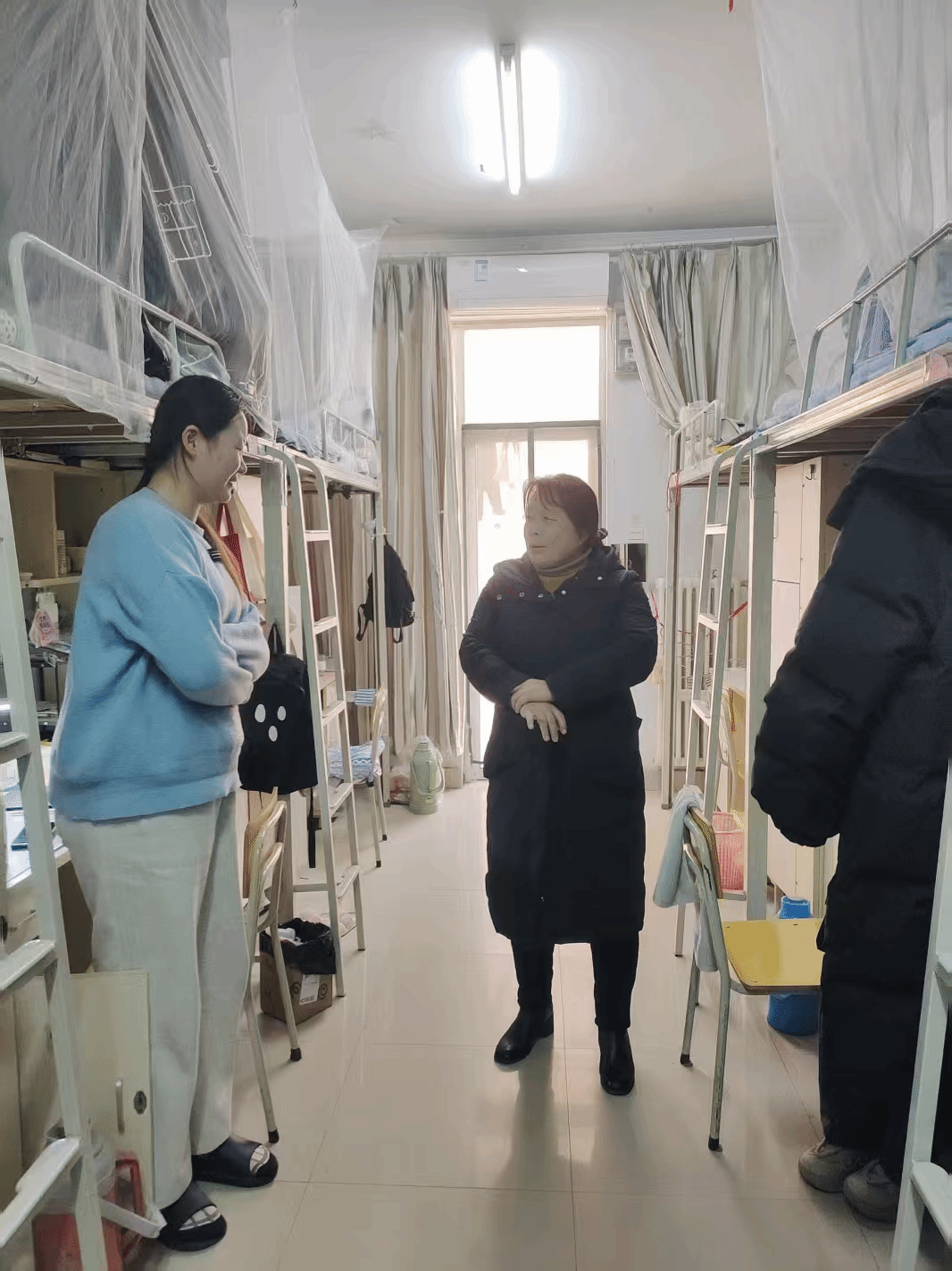 走访过程中,老师们亲切地与同学们交谈,询问大家在学习、生活上的情况。老师们仔细查看了宿舍环境,关心同学们的居住舒适度;针对同学们提出的学业困惑,老师们耐心解答并给予学习方法的指导。老师们还特别叮嘱同学们要注意用电安全,鼓励大家营造良好的宿舍氛围。