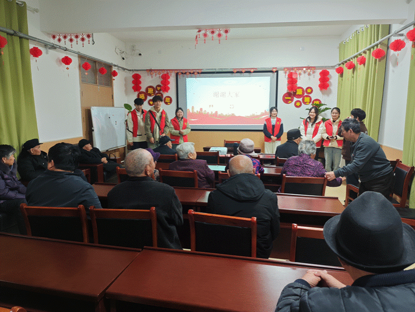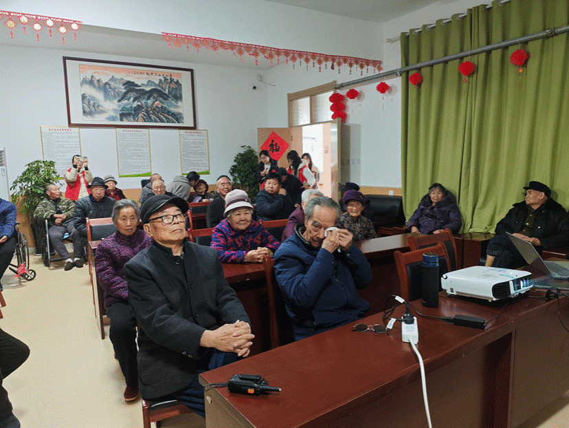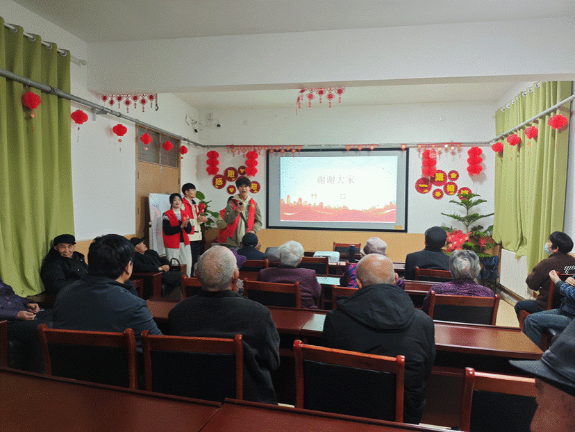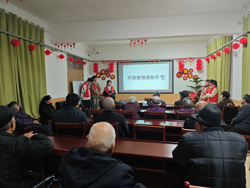 普法宣讲结束后,志愿者们精心筹备,为老人们献上了一场温馨的红色文化盛宴。活动室里,《学习雷锋好榜样》《没有共产党就没有新中国》等经典红歌激昂奏响,悠扬的旋律在空气中回荡,老人们沉浸其中,不自觉地打着节拍、轻声跟唱,眼角泛起感动的泪光。随后,“听到食物请拍手”等互动小游戏热烈展开,老人们踊跃参与,现场气氛高涨,欢声笑语此起彼伏,不仅拉近了彼此的距离,也让老人们重拾青春活力,尽享欢乐时光。