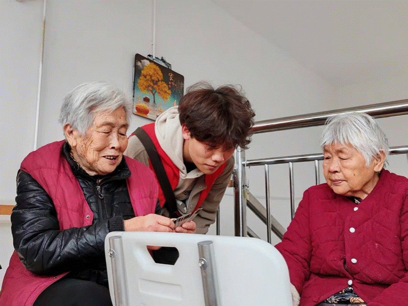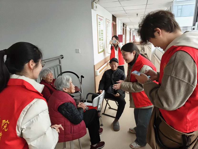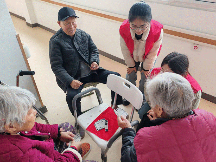 活动最后,志愿者们纷纷走进老人房间,主动帮忙整理内务,清扫地面、擦拭家具,使房间整洁如新。收拾完毕后,他们陪爷爷奶奶们下棋、打牌,听老教师、老党员讲述起当年的红色故事时,志愿者们眼神中满是敬佩。随后,他们又贴心地询问老人的身体状况,和他们聊起生活琐事,从饮食喜好到日常趣事,无话不谈,让老人们真切感受到了社会给予的尊重与关爱。