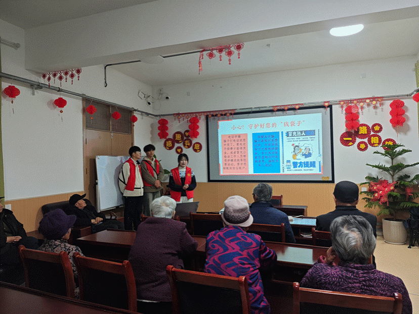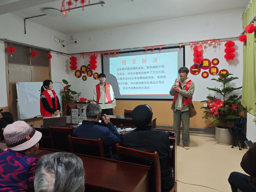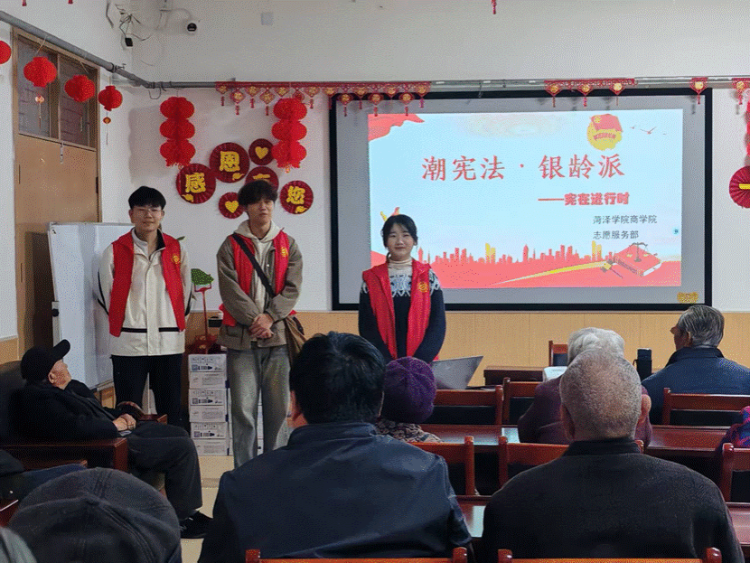 为提升老年群体司法获得感和生活幸福感,助力其维护合法权益,商学院组建“宪”在进行时普法小队,为老年人开展普法宣讲。志愿者们精准把握老年人的法治需求,用通俗易懂的语言从“电信诈骗”“保健品诈骗”等角度切入,深入浅出地讲解法律要点,帮助老年人认清养老诈骗“套路”,增强法治观念,让他们学会运用法律武器保护自身权益,让《宪法》宣传“听得懂,接地气”。