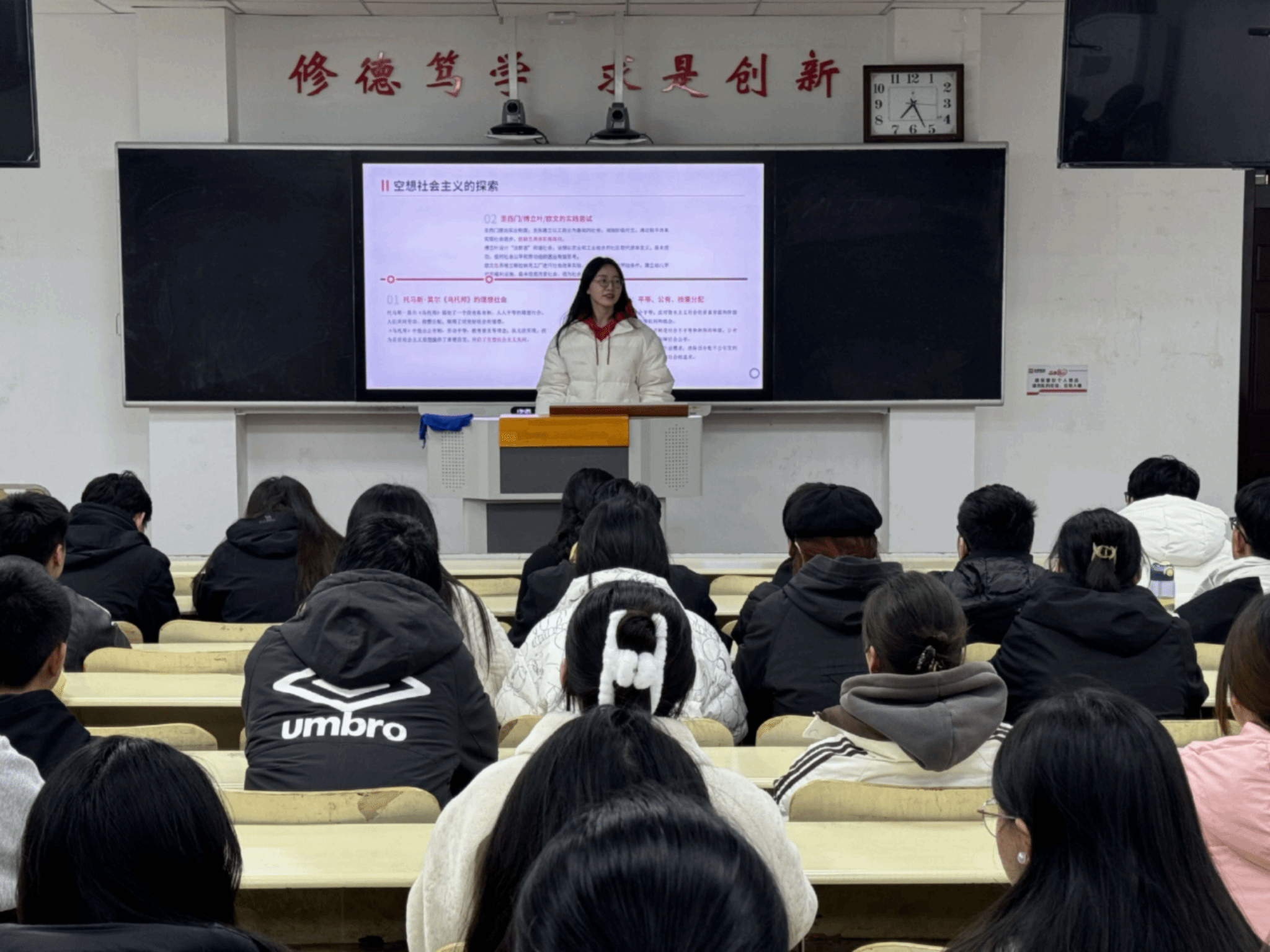 随后,辅导员付亚男、王娜、周脉杰围绕“党团思政”“改革开放”“空想社会主义”等多个主题进行开展。对入团积极分子具体进行了思想政治教育,党史、新中国史、改革开放史、社会主义发展史教育,团史团章等团内规章和团的基本知识以及教育。让学员们深刻认识到共青团始终与党同心、跟党奋斗的光荣历程。