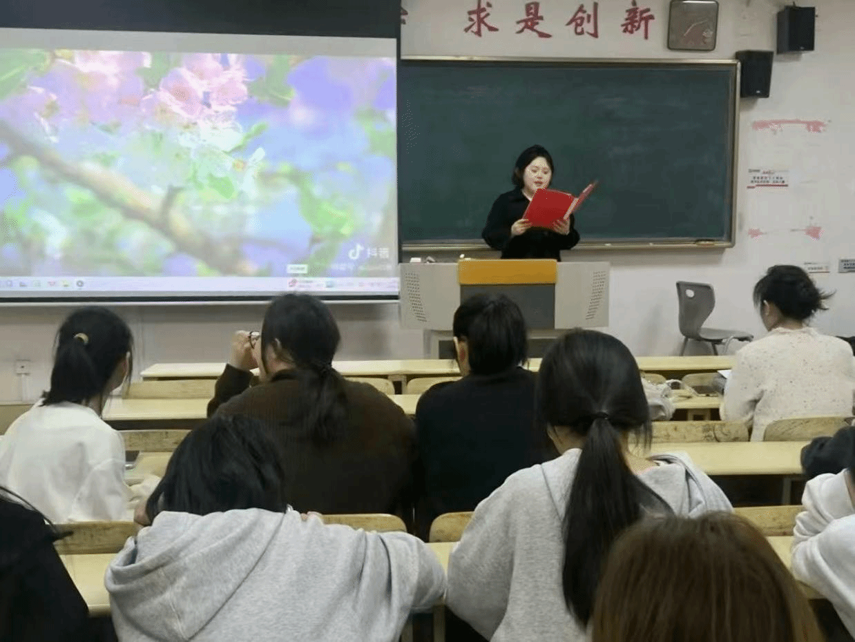 活动中,2023级学前教育专业本科二班王竹以极具感染力的嗓音,配合轻柔舒缓的古典音乐,将诗歌中细腻的情感与春天的灵动展现得淋漓尽致;2023级学前教育专业对口班王军霞配合着舒缓优美的肢体动作,为观众营造沉浸式的春日诗意体验,赢得了现场观众的热烈掌声。