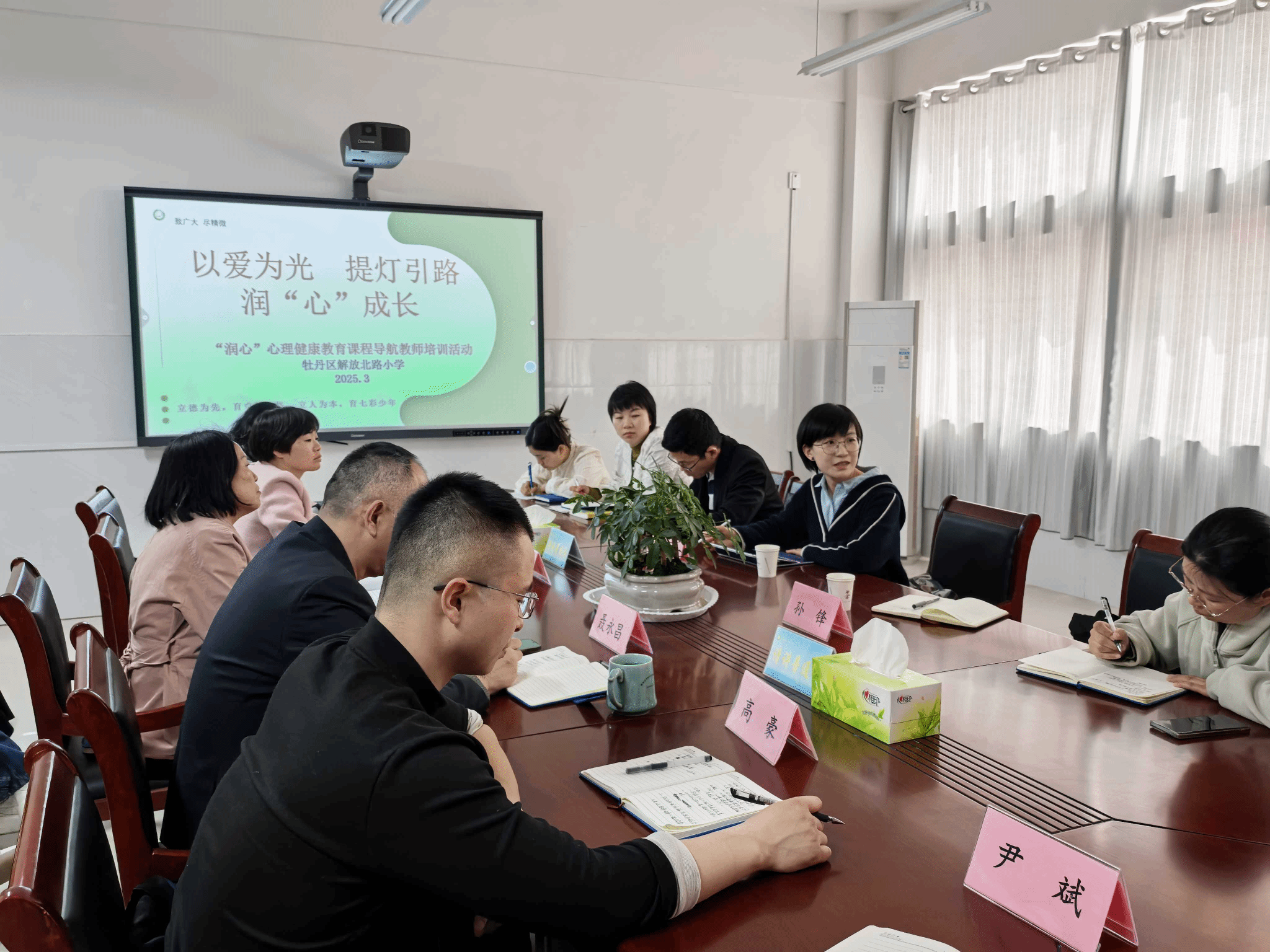3月24日,教师教育学院心理学系主任陈珅、副主任孙锋走进解放北路小学,参与“以爱为光,提灯引路,润‘心’成长”心理健康教育活动。