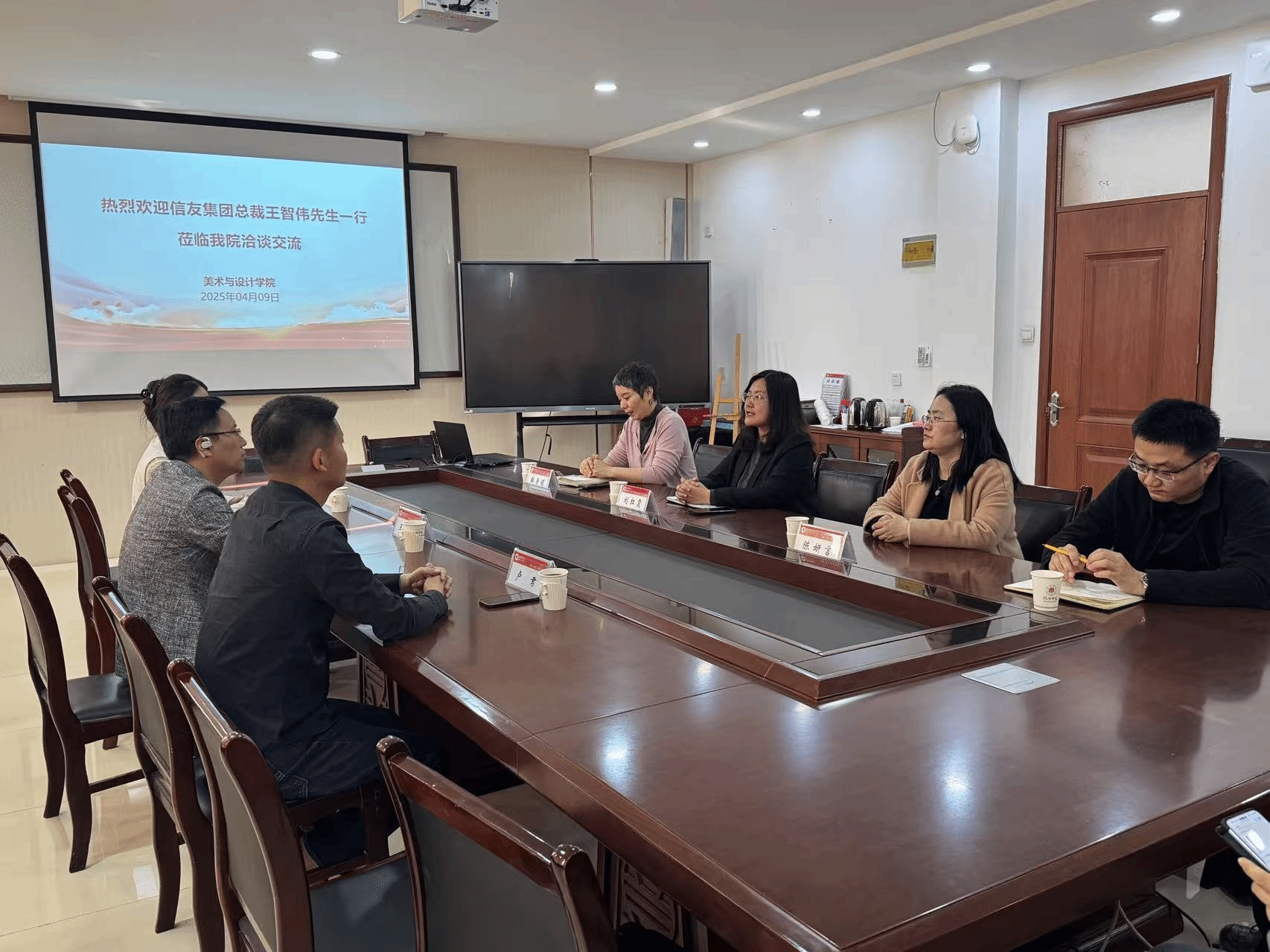 王智伟对学院的专业设置、师资实力与人才培养模式给予高度评价。他指出,信友集团近年来在文旅地产、商业综合体开发等领域持续发力,亟需艺术设计与文化创意领域的专业支持。美术与设计学院在项目实践与学术研究上的深厚积淀,与集团发展需求高度契合。未来期待通过共建实习基地、联合攻关项目等形式,将学院的前沿设计理念转化为市场竞争力,共同打造具有文化内涵的城市空间与商业品牌。
