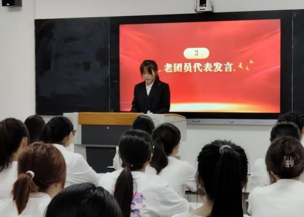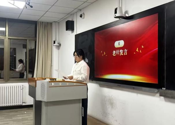 在仪式尾声,张亚娟老师向新入团的同学们致以诚挚祝贺,希望同学们永葆"党有号召、团有行动"的政治自觉,以"强国有我"的青春豪情,在求知路上勇攀高峰,在日常生活中争当表率,用实干担当诠释共青团员的光荣称号,让青春梦想与民族复兴同频共振。