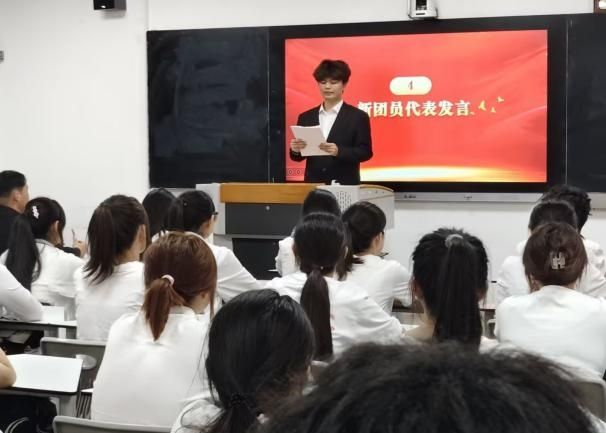 老团员代表郭盈贝同学在发言中勉励新团员,要在思想上追求进步、在工作中展现担当,以个人所长为团组织贡献青春力量,让团队活动焕发新的活力。谢忠琪同学作为新团员代表表态,要永葆迎难而上的奋斗姿态,在民族复兴的壮阔征程中书写青春篇章。