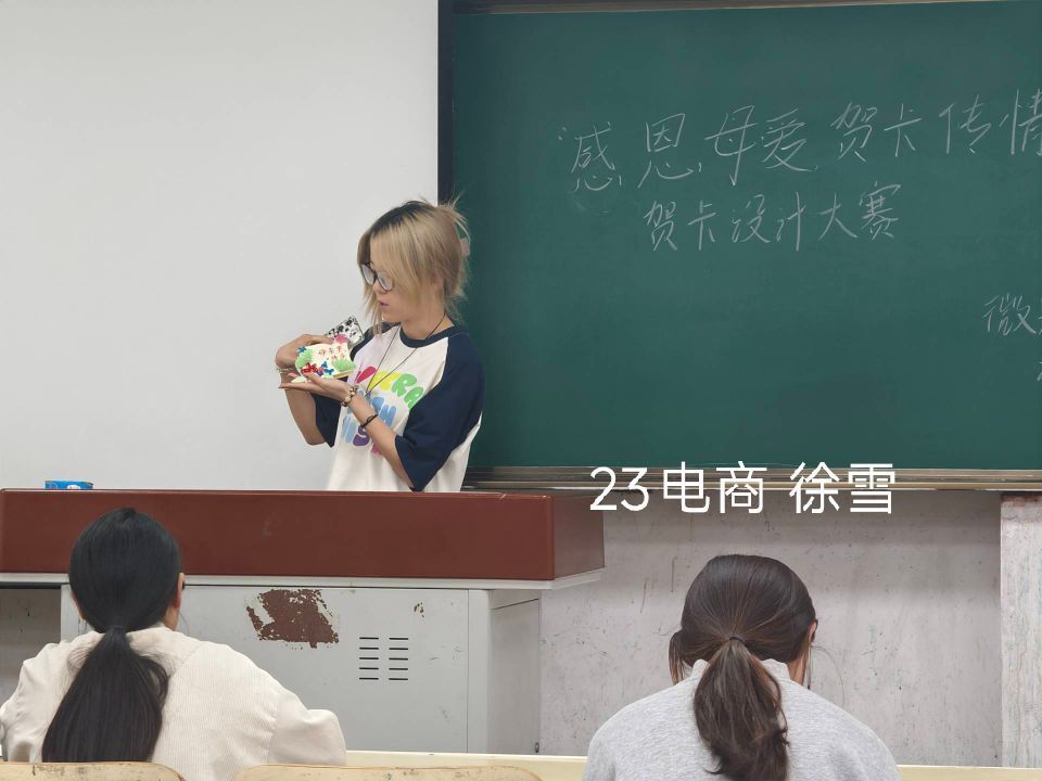 为了弘扬母爱精神,激发同学们的感恩之心与手工创作热情,引导大家用手绘笔触传递对母亲的深切爱意,5月10日,商学院在8112教室举办“感恩母爱,贺卡传情”贺卡设计大赛,商学院同学们积极参与本次大赛。