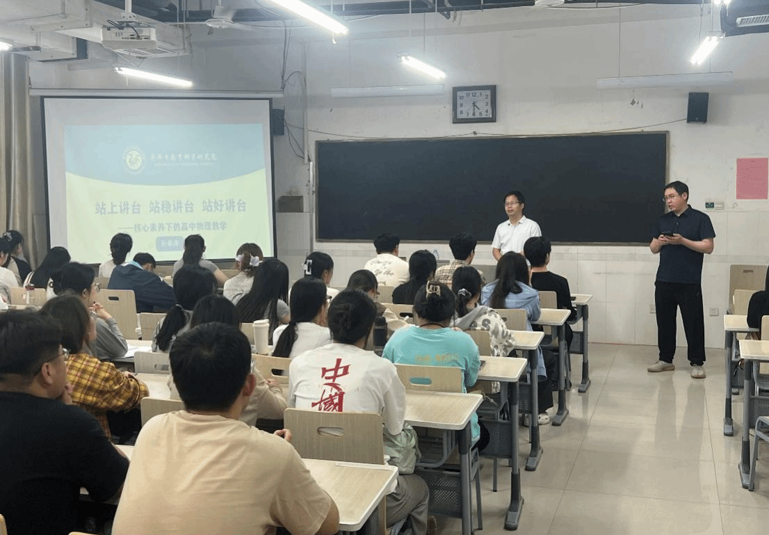 报告伊始,蔡鲁刚老师向在场师生详细介绍了孙奉涛老师的卓越成就,并对其重返母校分享教学智慧表示热烈欢迎。孙老师以“什么是物理学科核心素养”与“怎样教能有效促进学生物理学科核心素养发展”两大问题展开分享,为同学们呈上一堂理论与实践深度融合的教育盛宴。