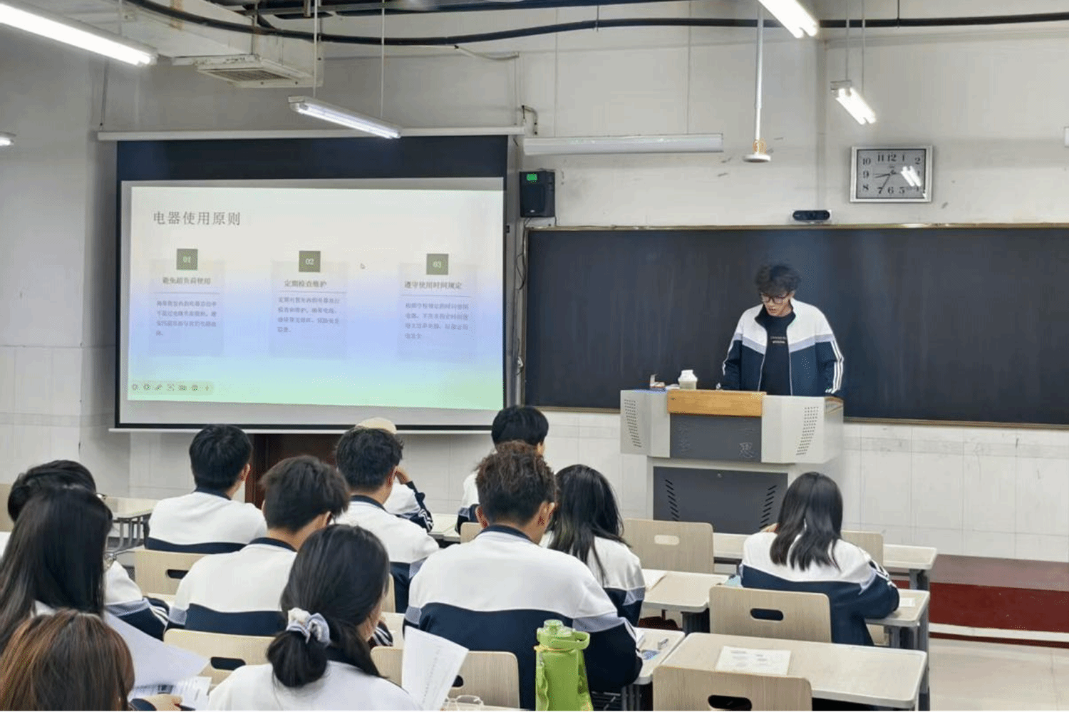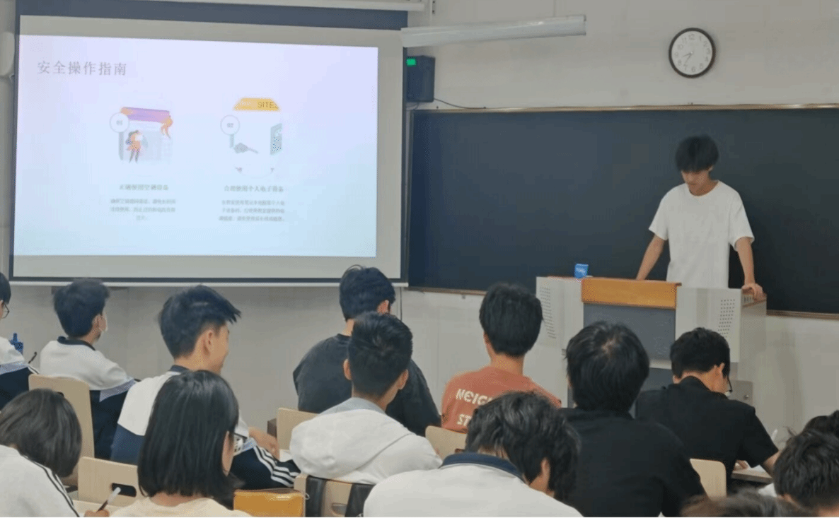 本次活动以“班级自学+集中宣讲”模式展开,各位班长通过播放安全教育视频、发放宣传资料等形式,重点讲解了实验室、多媒体教室等高功率设备密集场所的用电规范。针对私拉乱接电线、超负荷用电、违规使用大功率电器等行为,深入剖析安全隐患与严重后果,让同学们直观感受到“隐患即事故”的深刻警示。同时,关于学院教室用电,各位班长再三强调,教室使用结束后应随手断电,及时关闭电扇、空调等电器,同学们认真聆听,深刻认识到安全无小事,纷纷表示将从规范使用电器设备做起,严格遵守校园安全管理制度,用实际行动为校园安全贡献自己的力量。