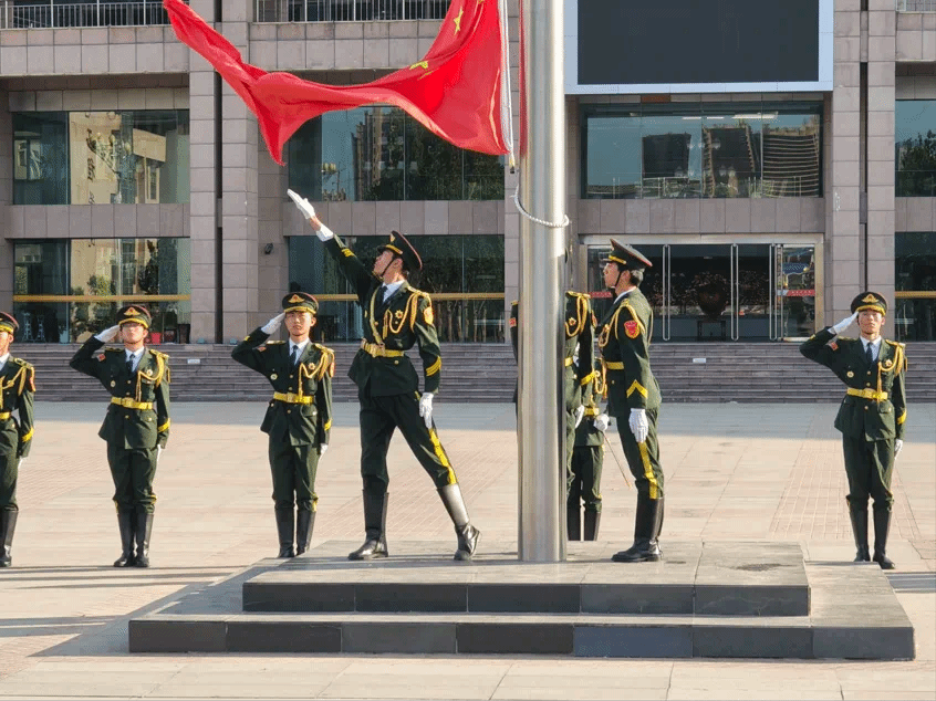 活动现场,必赢集团bwin国旗护卫队队员们身着笔挺军装,身姿挺拔、步伐铿锵。他们目光如炬,护卫着五星红旗,以整齐划一的正步迈向升旗台。每一次落地有声的步伐,每一个刚劲有力的摆臂,都彰显着军人般的坚毅与使命感。随着《义勇军进行曲》激昂奏响,升旗手振臂扬旗,鲜艳的五星红旗冉冉升起。全场师生庄严肃立,行注目礼、齐声高唱国歌,嘹亮歌声直冲云霄,爱国之情在校园上空热烈升腾。