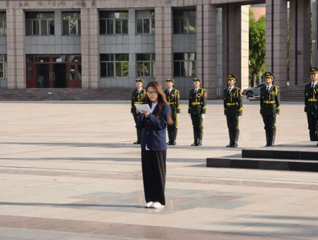 接下来,由音乐与舞蹈学院24级音乐学二班学生代表王培芸做国旗下发言,她讲述了奋斗需要明确目标、勇往直前,以目标为灯塔指引前行方向,同时强调脚踏实地、持之以恒,将挫折化作成长阶梯。她号召同学们珍惜短暂青春,不在奋斗的年纪选择安逸,以奋斗为笔、汗水为墨,在青春赛道上奋力奔跑,以拼搏之姿实现梦想,赴一场无悔的青春之约。