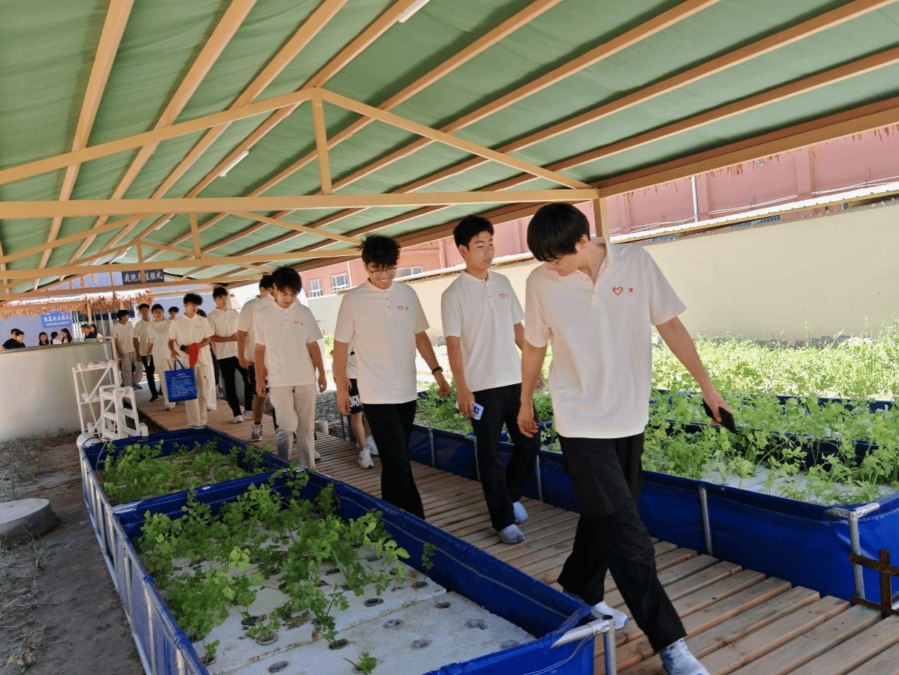 随后,团队参观了党集镇推广的庭院养殖模式。这种模式充分利用农户房前屋后的闲置空间,通过小型化、数字化养殖设备,实现家庭式高效养鱼。志愿者们对庭院养殖中涉及的溶氧控制、废水处理等环节表现出浓厚兴趣,结合化学知识建议引入更环保的水处理技术,减少对环境的影响。团队成员还与当地农户热烈讨论如何通过新媒体平台推广庭院养殖产品、拓宽销售渠道,为小庭院对接大市场提供新思路。