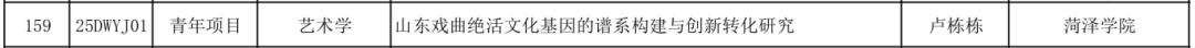 2025年8月13日,山东省社会科学工作办公室公布2025年山东省社会科学规划项目立项名单,音乐与舞蹈学院戏曲表演系卢栋栋教师主持的《山东戏曲绝活文化基因的谱系建构与创新转化研究》成功获批艺术学类青年项目立项。