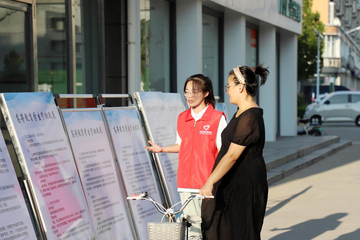 8月骄阳正好,热烈而又灿烂。我们10位志愿者在必赢集团bwin奖励资助中心主任贾晓蒙老师和刘汉明老师的带领下,带着宣传展板、手册和满腔热忱前往社区。出发前的筹备阶段,满是细碎的认真:贾老师和刘老师逐字帮我修改主持稿,从语气到内容细细打磨,“这里加点家常话,听着亲切”,细致的指导让我心里踏实了不少;团队里的伙伴们也早早忙起来,对着清单整理物资,光是看着那些厚实的宣传手册和印着政策的展板,就隐约感受到手里攥着的不只是物品,更是一份沉甸甸的责任。