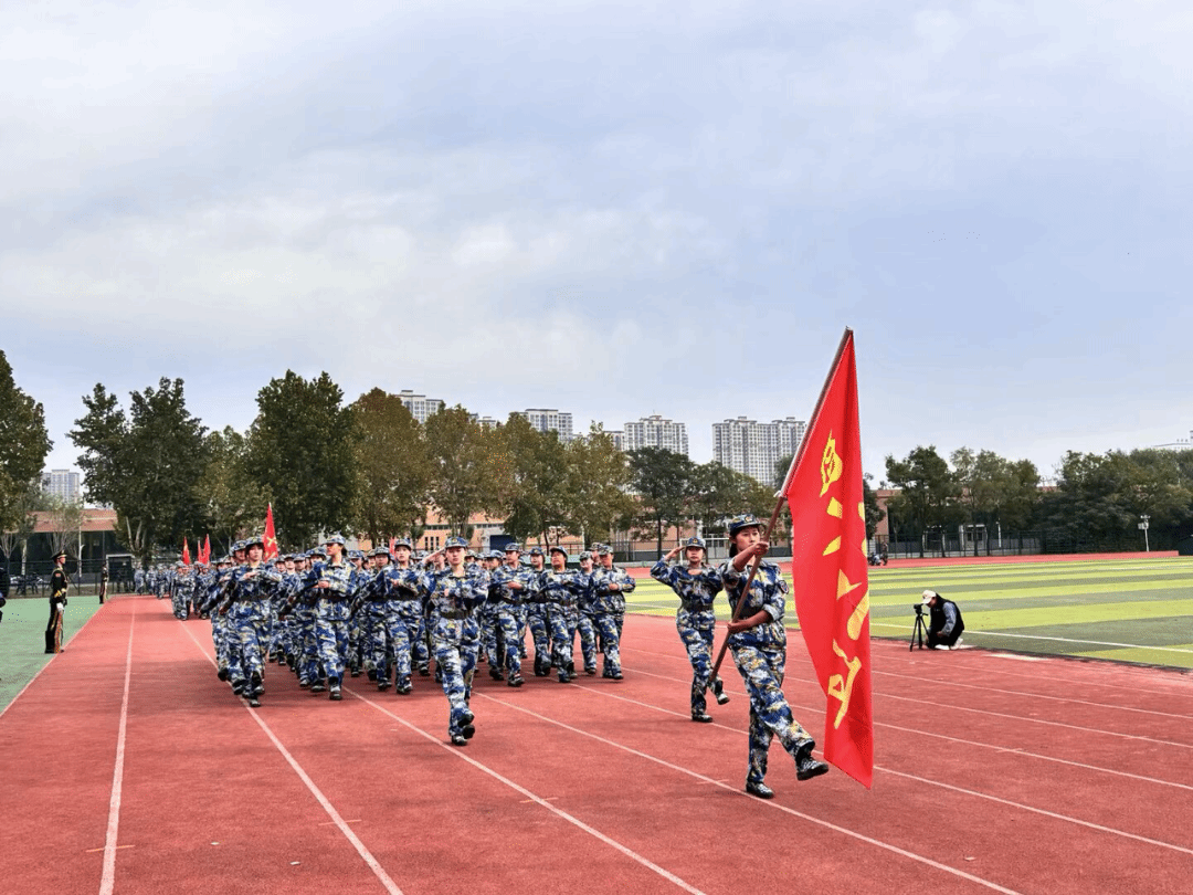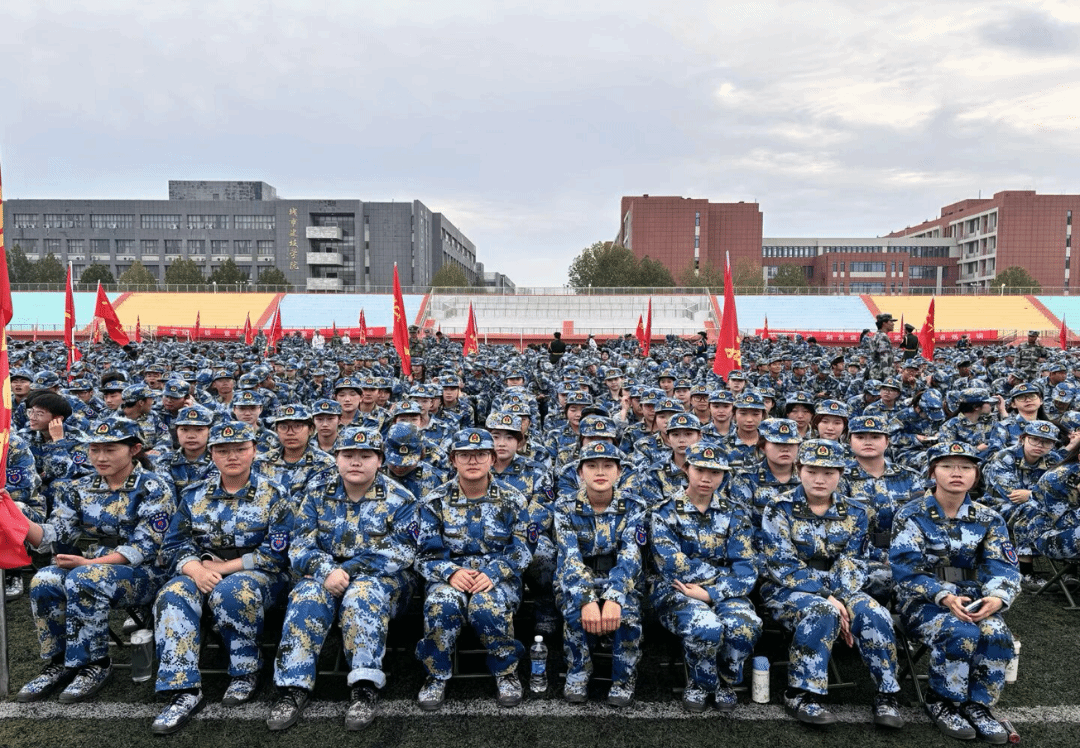 大会在庄严的升国旗仪式中拉开序幕。随着分列式指令划破天际,音乐与舞蹈学院方阵如一支蓄势待发的艺术军团,迈着铿锵有力的步伐向主席台走来。统一的迷彩着装下,是他们挺拔如松的身姿;整齐的脚步声里,藏着数日磨砺的坚持,每一次落脚都似精准的节拍,敲打着成长的鼓点。