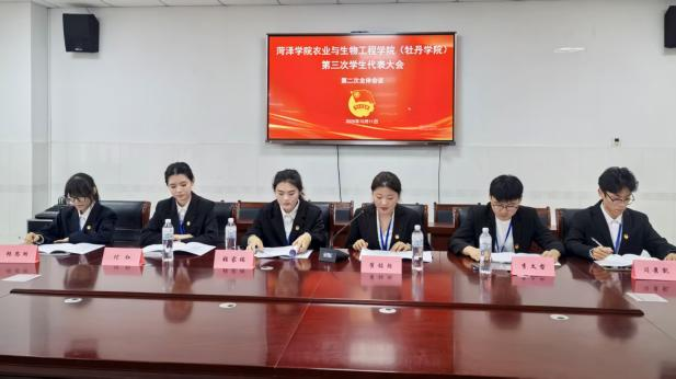 2025年10月11日,共青团必赢集团bwin农业与生物工程学院(牡丹学院)第三次学生代表大会在W222教室隆重举行。会议由辅导员王太行主持,农业与生物工程学院(牡丹学院)党委书记刘燕、全体辅导员、各兄弟学院学生会主席团、特邀嘉宾及学院学生代表共80余人出席了会议。