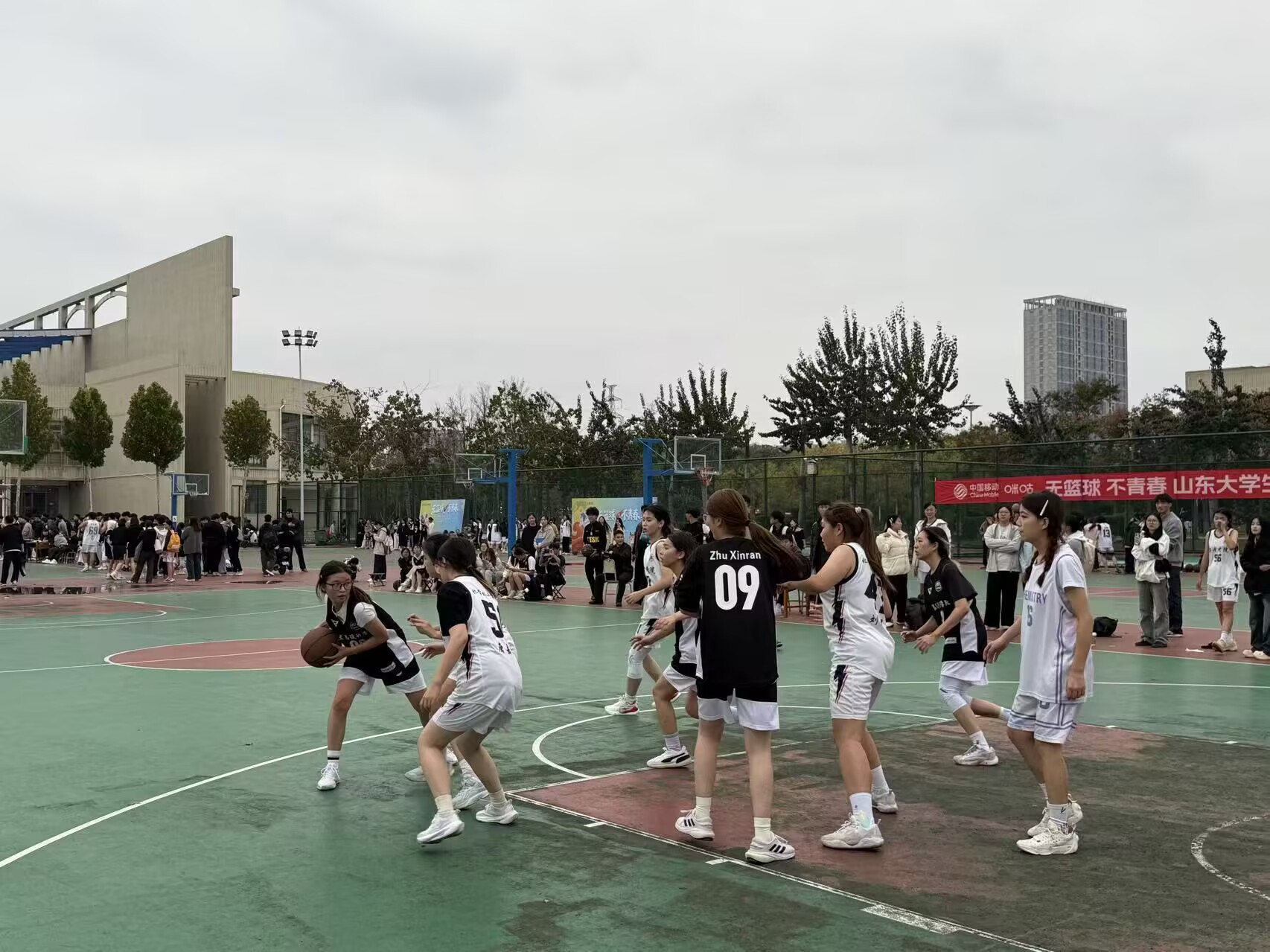 赛程紧张而激烈,队员们精神饱满、意气风发,随着裁判一声令,他们迅速投入比赛,展现出优秀的战术执行与灵活的应变能力。他们用快速的攻防转换,犀利的突破上篮、严密的防守布阵,赢得了场边观众的阵阵呐喊。每场比赛都充满悬念,队员们不畏强手、奋勇争先。关键时刻的三分远投、果断的内线冲击以及顽强的篮板拼抢,一次次将赛场气氛推向高潮。现场师生情绪高涨,助威声此起彼伏,展现了美院学子团结向上的集体荣誉感。