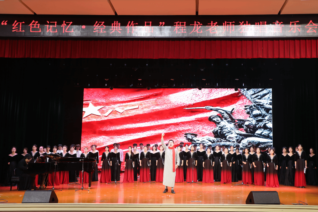 音乐会由“历史的赞歌”、“时代的凯歌”、“辉煌的颂歌”三大乐章组成。《松花江上》、《拿起枪 去战斗》、《歌唱二小放牛郎》等歌曲让现场观众仿佛穿越时空,回到那个战火纷飞的年代,展现出革命先辈们无畏的勇气和坚定的信念;《等着我,亲爱的人》、《爱永在》、《天下乡亲》等歌曲展现了新时代的蓬勃发展与人们的奋斗精神,传递出对亲人、爱人的思念与牵挂,让大家感受到人间真情的温暖;《红星照我去战斗》、《天路》、《跟你走》等歌展现了中国共产党带领人民取得的辉煌成就,表达了对党的忠诚和对美好未来的坚定信心。音乐会结束后,现场观众纷纷表示,这场音乐会不仅是一场听觉的盛宴,更是一次心灵的洗礼。不仅体会到老师和学生们的专业素养和艺术才华,更感受到他们身上所蕴含的爱国情怀和责任担当。