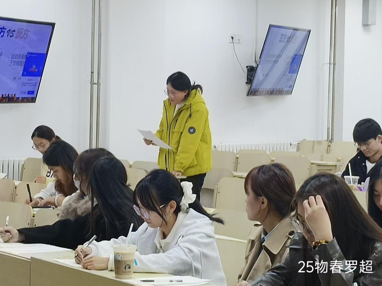 本次辩论赛抽签决定对手与辩题的正反方。比赛前夕,辩手们分工查资料、反复磨合论点。比赛现场,他们引经据典、逻辑缜密,既有默契十足的团队协作,又不乏独到犀利的个人见解,凭借扎实的专业素养与灵动的辩论技巧,将观点碰撞的精彩瞬间展现得淋漓尽致。现场气氛紧张而又热烈,清晰的论证思路与流畅的语言表达得到了观众的阵阵掌声。