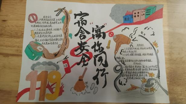 宿舍,是我们在校园里生活、学习、休憩的重要场所,是我们共同的“家”。因此保障宿舍安全,提高宿舍安全意识,提升自我防护和应急处理能力,尤为重要,本次活动通过手抄报的形式引导同学们关注宿舍安全,深入学习消防、用电、防盗、防灾等各方面安全常识,将安全意识内化于内心、外化于形。