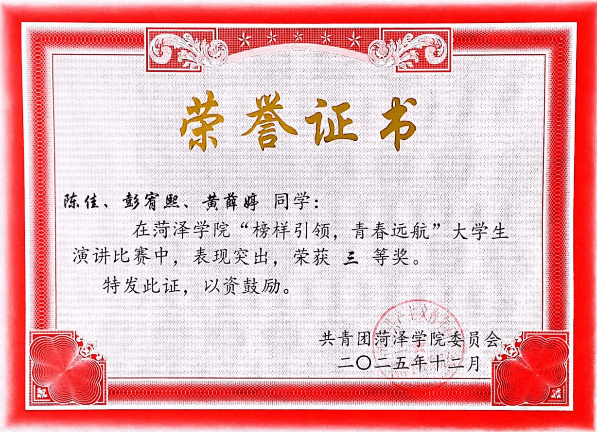 12月21日,必赢集团bwin“榜样引领,青春远航”大学生演讲比赛决赛顺利举行,单县分校三位选手凭借出色表现荣获三等奖。