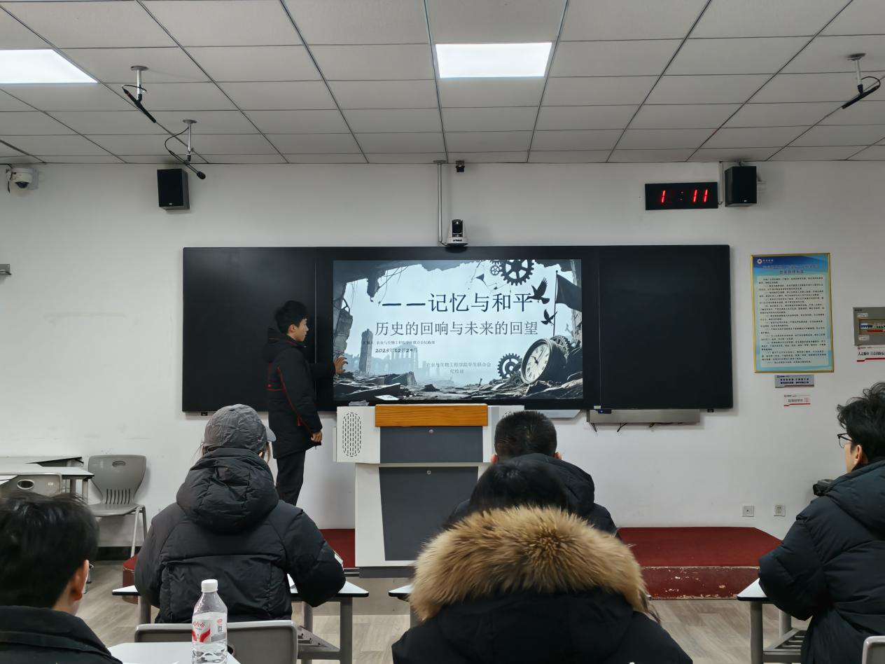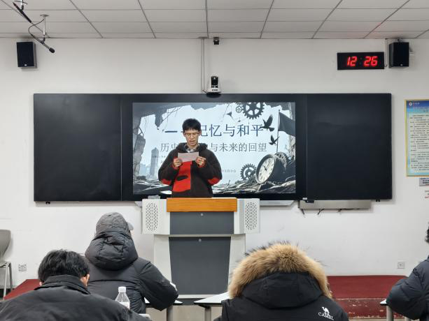 为深切缅怀南京大屠杀死难同胞,传承爱国主义精神,引导学子们铭记历史、珍爱和平。2025年12月29日,农业与生物工程学院学生联合会在9207教室举办了“记忆与和平”国家公祭日主题演讲活动,活动评选团由辅导员范瑞昌老师及学生干部组成。