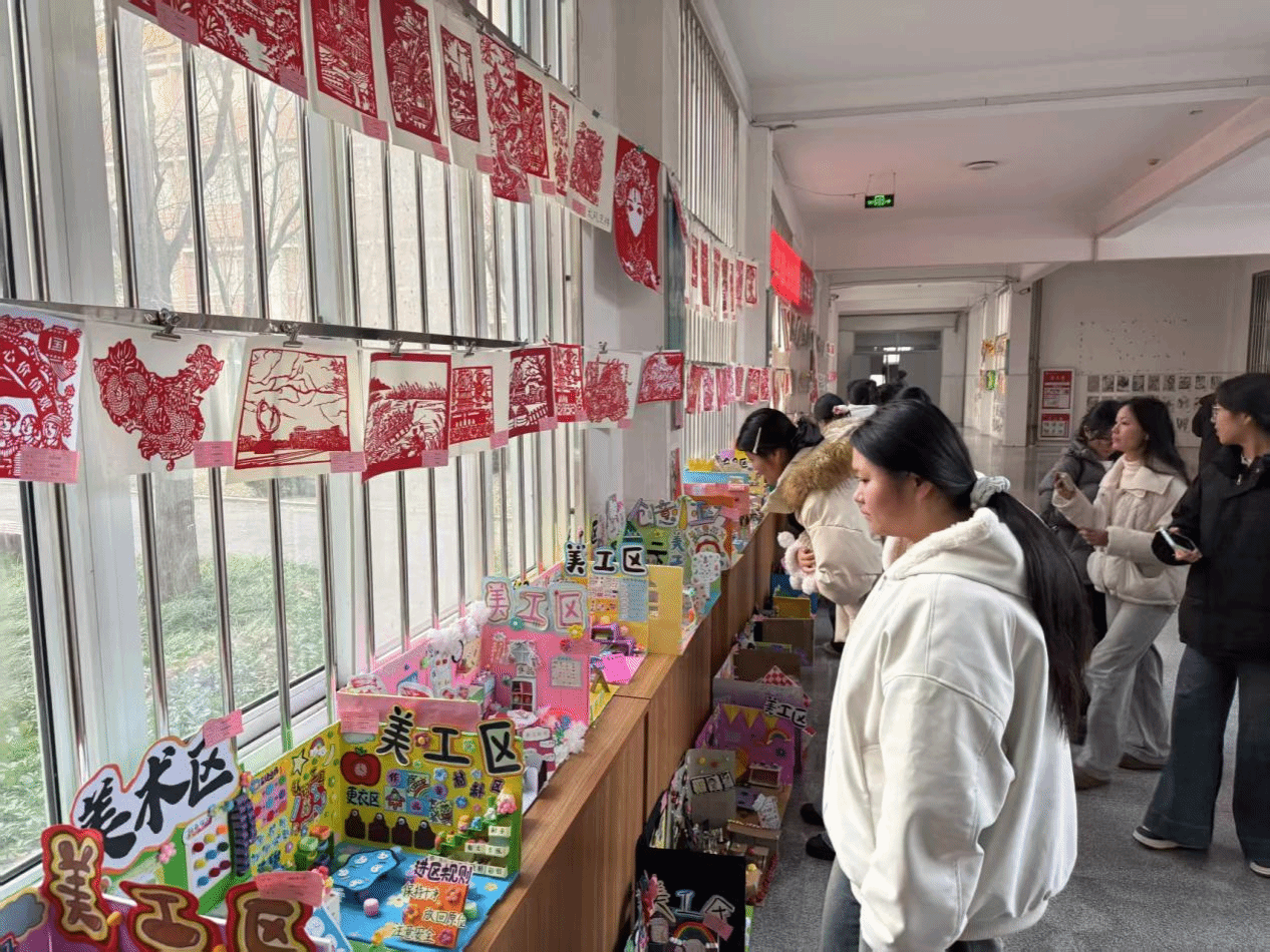 在展厅内,一幅幅色彩绚丽的绘画作品、一件件创意十足的手工制品,吸引了众多师生驻足观赏、细细品味。学生们用灵动的画笔勾勒美好生活,用精湛的技艺诠释艺术追求,用真挚的情感表达对新年的祝福与对未来的憧憬。不少师生在作品前拍照留念,相互交流创作心得,现场气氛热烈而温馨。分校领导对本次作品展给予高度评价:认为作品展不仅为学生提供了展示自我的平台,更以艺术育人的方式,丰富了校园文化内涵,提升了学生的审美素养。