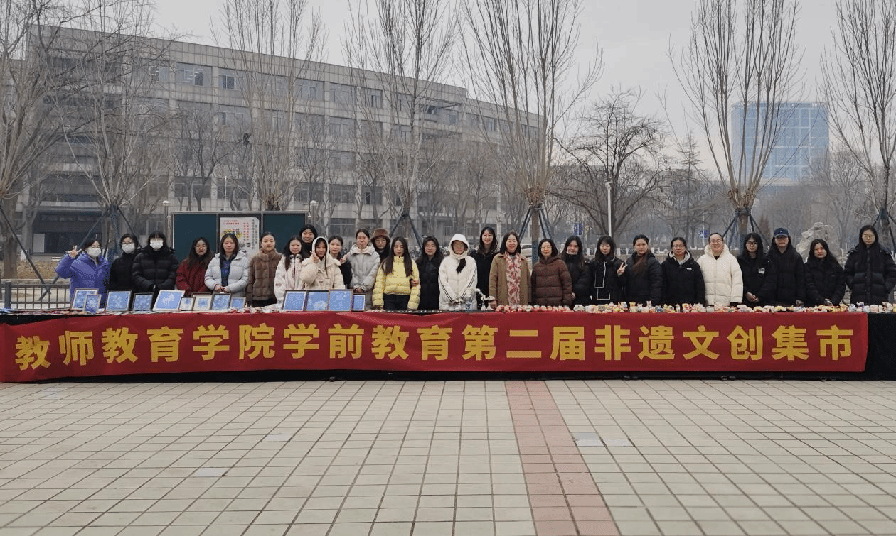 2026年1月14日,必赢集团bwin雅苑餐厅前热闹非凡,由教师教育学院主办的非遗文创市集圆满落幕。此次市集是2023级创新创业课程的成果展示,在赵霞、赵凤君两位老师的悉心指导下,2023级学前教育专业同学们将陶艺、剪纸、扎染等民间工艺融入现代生活,打造出一系列有温度的文创作品。